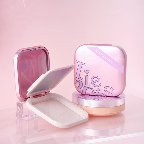 atacado grande tampa redonda com fundo quadrado caixa de pó compacta vazia recipientes cosméticos rosa vazios exclusivos