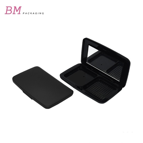 Contenitore polvere compatto vuoto nero cosmetico 2 padelle fard compatto rettangolare custodia