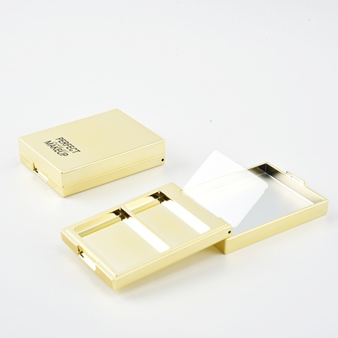 Commercio all'ingrosso Custom Logo Blush custodia per il trucco due colori rettangolo oro di lusso vuota per il viso in polvere scatola compatta