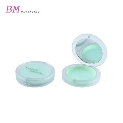 Recipiente de pó compacto em ABS transparente de parede dupla, redondo e verde fosco, pó compacto para prensa magnética